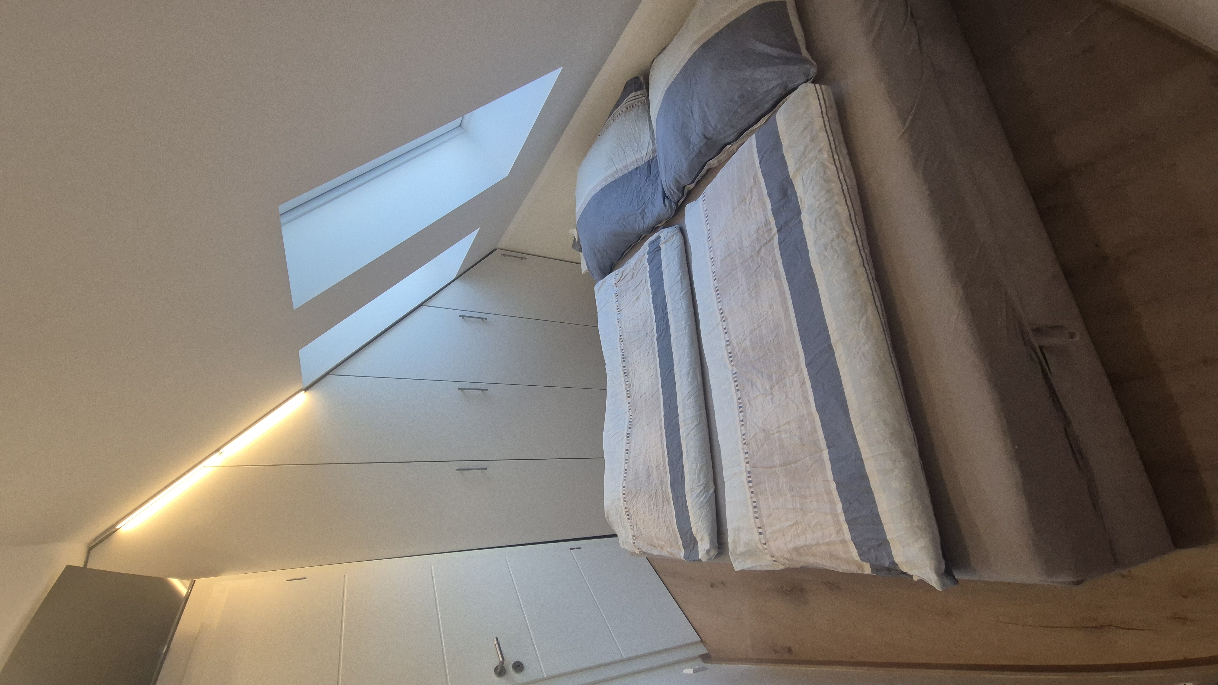 Die ca. 50+18m² große Wohnung mit funktionalem Grundrisse, befindet sich im Dachgeschoss eines 3-Familienhauses. Die Wohnung verfügt über ein separates Schlafzimmer mit Boxspringbett. Der offene Wohnbereich wird durch die Küche abgerundet.
