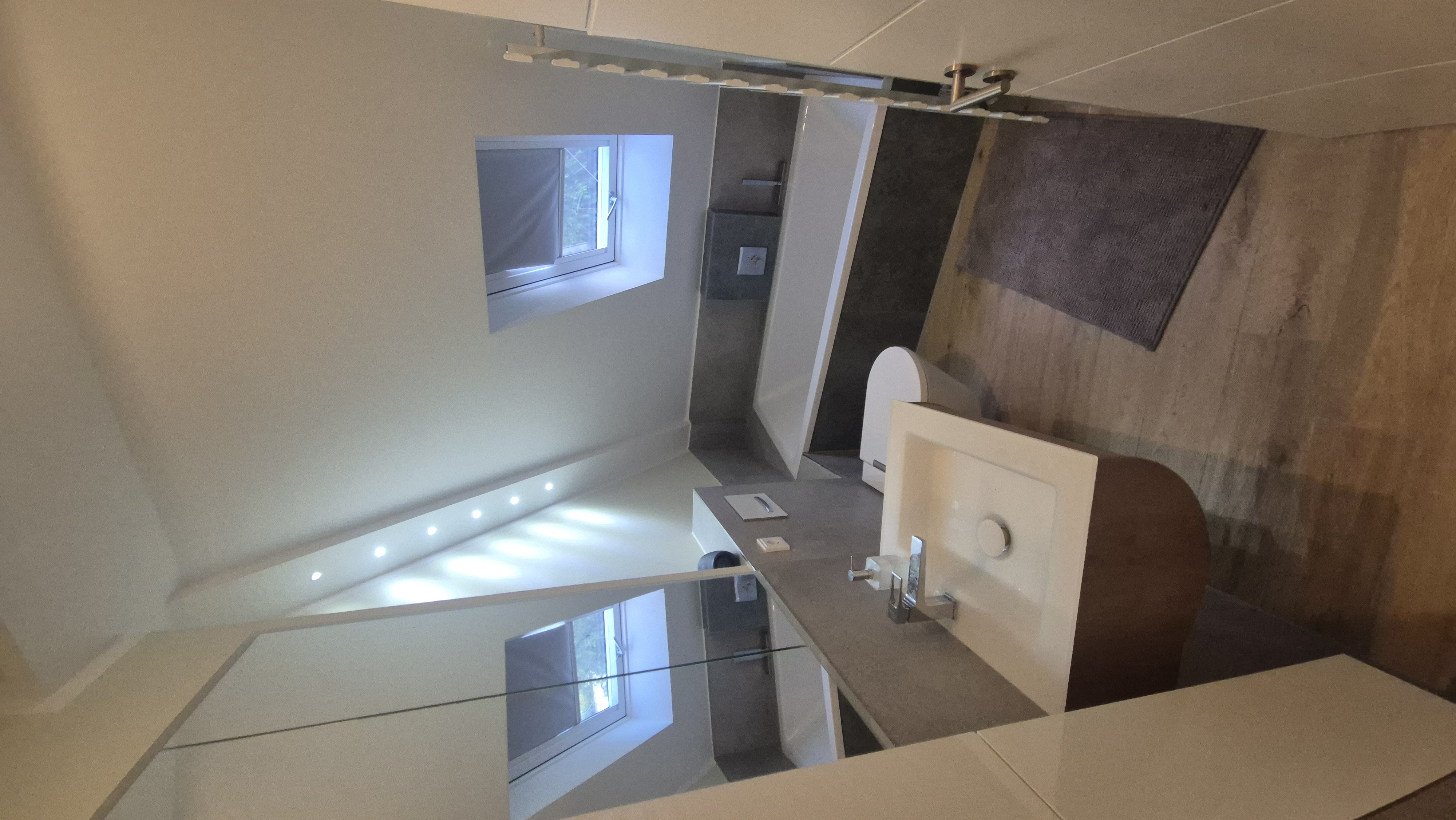 Das Bad mit riesiger Badewanne, begehbarer Dusche, Designer-Waschbecken, WC mit Bidetfunktion runden das Angebot dieser Wohnung ab.