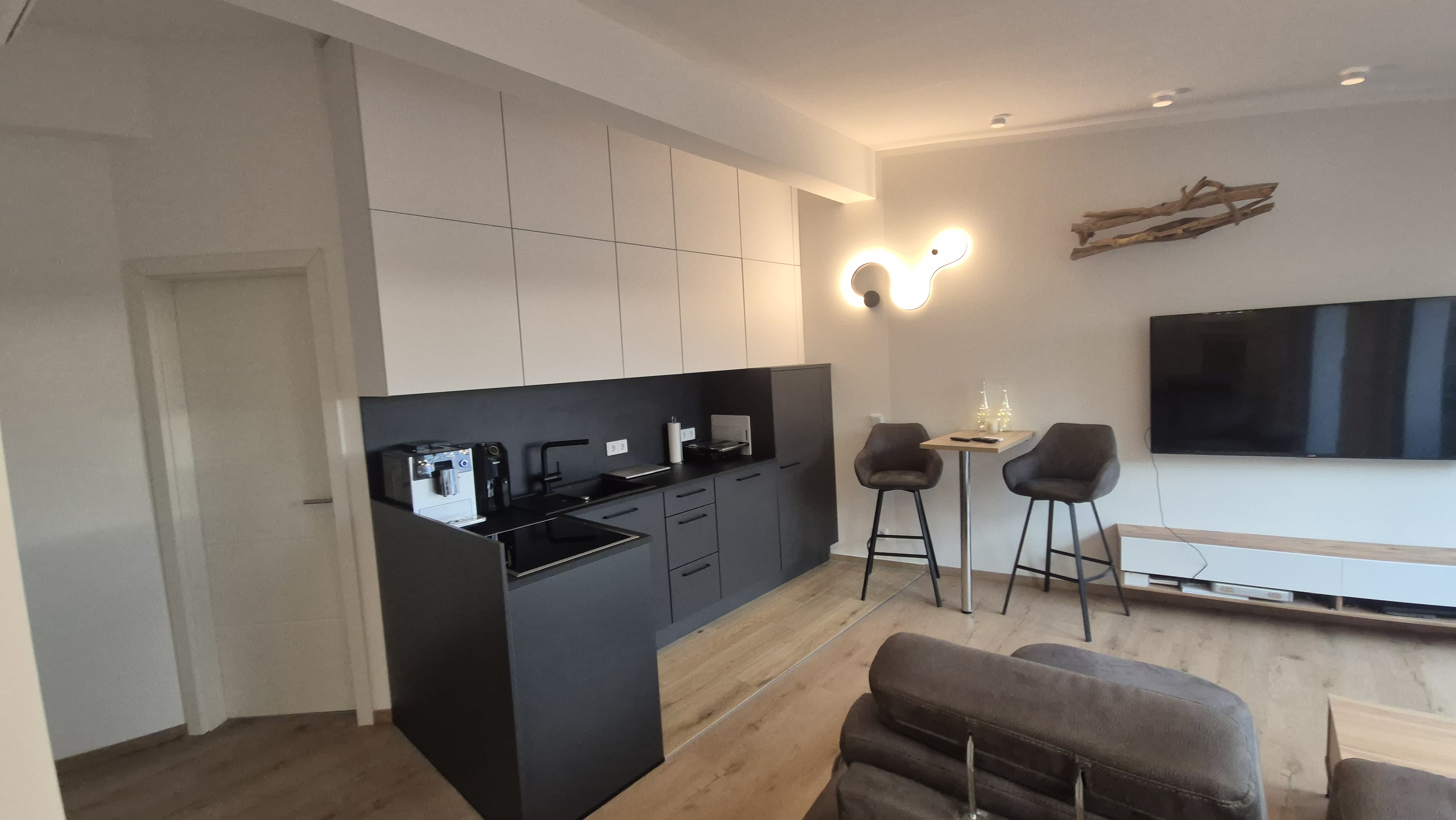 Ein Appartment mit 1 Schlafzimmern (1 Doppelbett) und Wohnbereich mit offener Küche und unglaublichen gemütlichen Ambiente.
