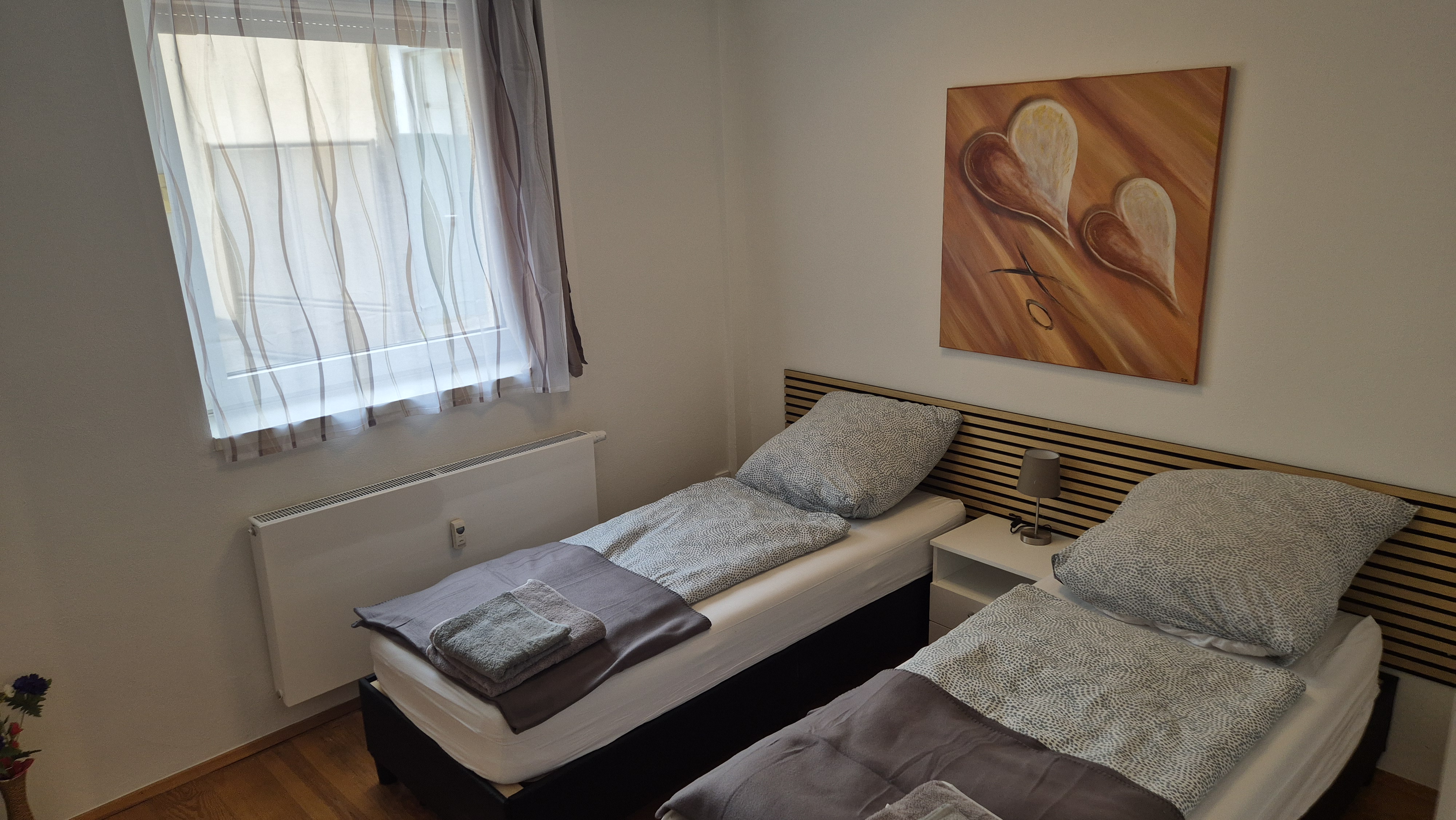 Das Gästeapartment „Weisenau“ verfügt über ein Wohn -und Schlafbereich mit je 2 Einzelbetten (200cm x 80 cm), zusammenstellbar als Doppelbett. Der offene Wohnbereich beinhaltet eine funktionale Küchenzeile. Das Tageslicht-Dusch-Bad bietet ausreichend Platz um entspannt in den Tag zu gehen..
