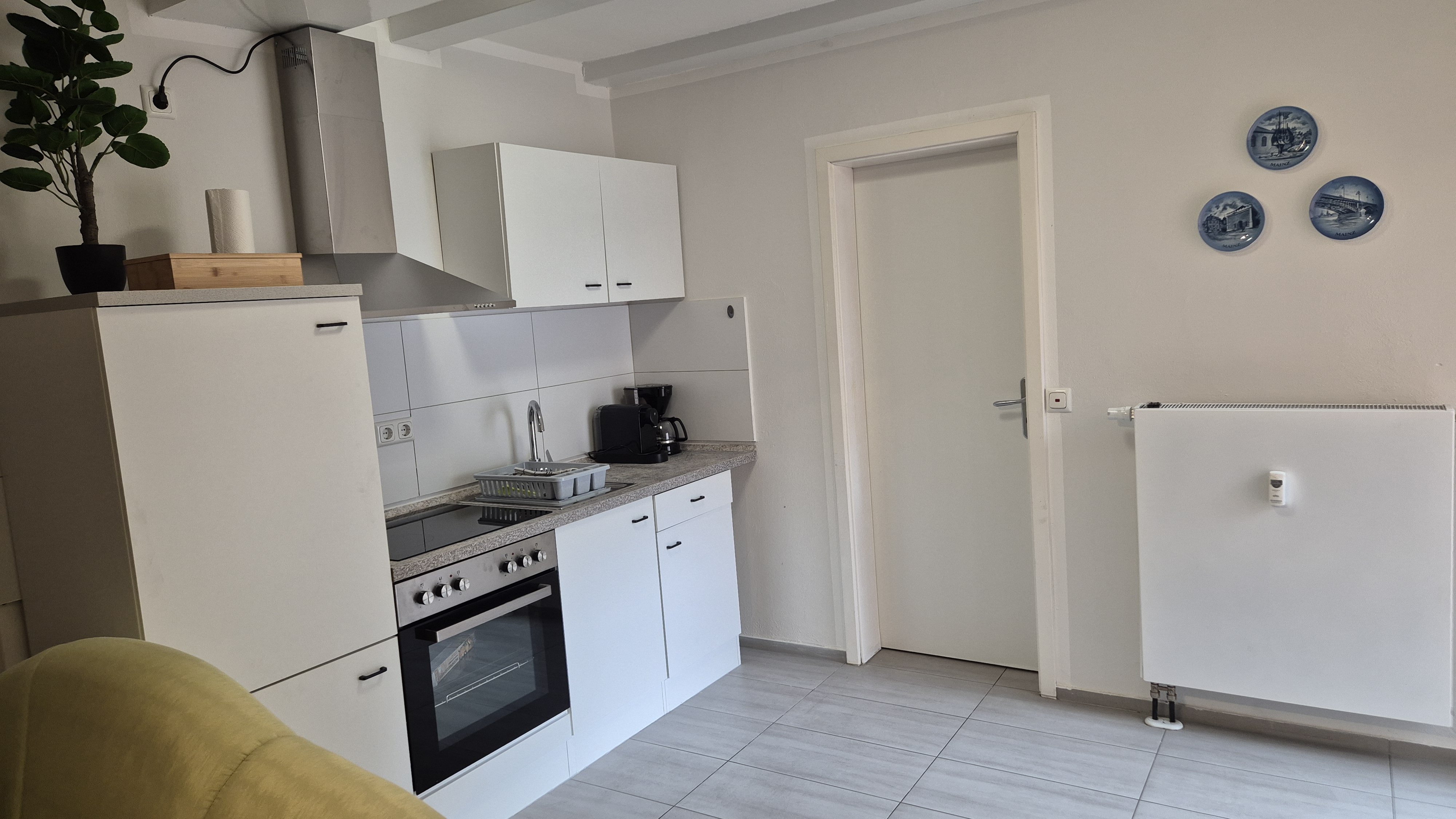 Die Küchezeile verfügt alles was Sie zur Selbstversorgung benötigen. Komplett ausgestattet, u.a. Wasserkocher, Herd mit Ceranfeld und Backofen bis hin zur Tchibo-Kapsel-Maschine, Filterkaffeemaschine, Toaster, Gläser, Geschirr, Besteck, Töpfe, Pfannen, etc..
