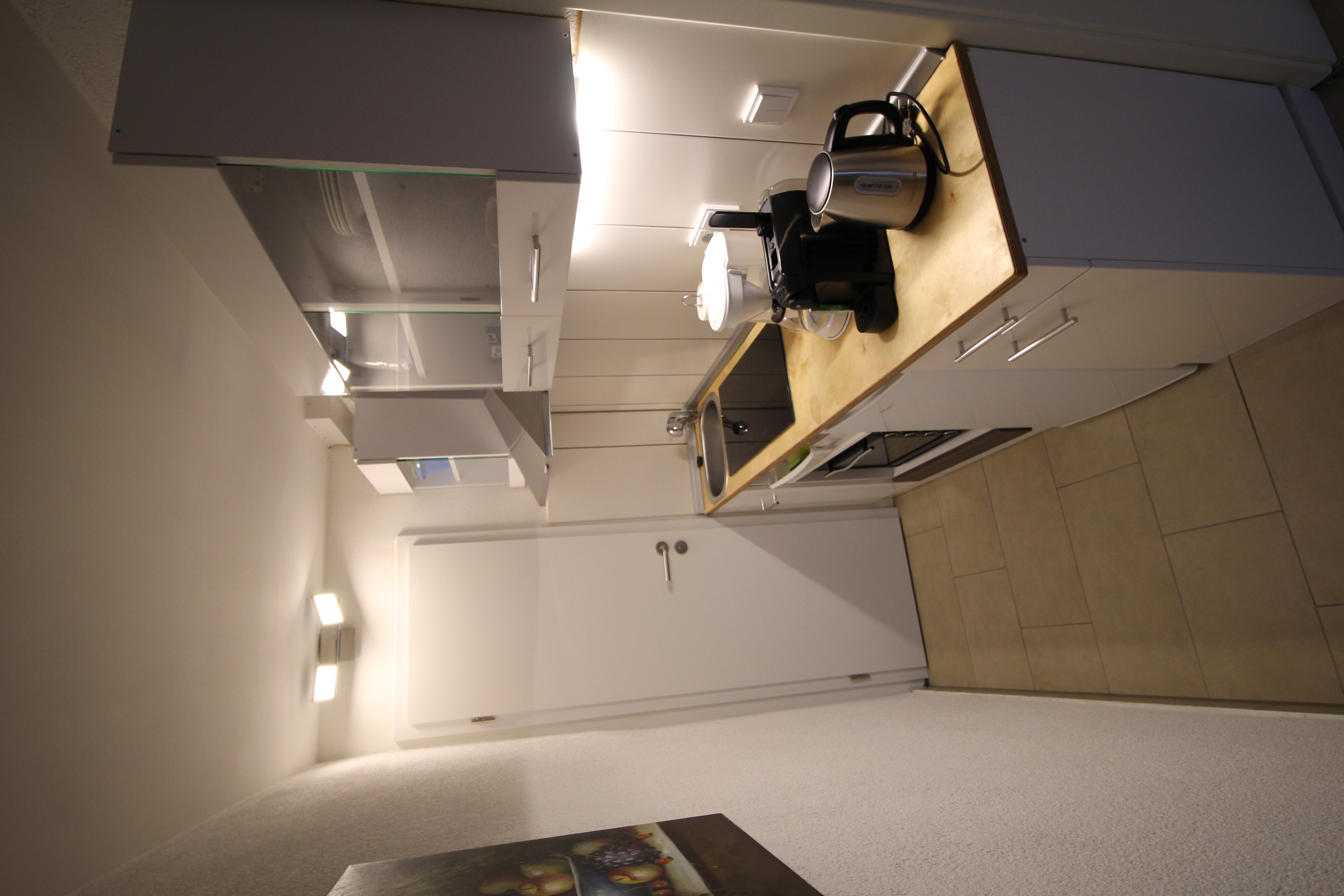 Die Küche verfügt alles was Sie zur Selbstversorgung benötigen. Komplett ausgestattet, u.a. Kühlschrank, Wasserkocher, Mikrowelle, Herd mit Ceranfeld und Backofen bis hin zur Nespresso-Maschine, Filterkaffeemaschine, Toaster, Gläser, Geschirr, Besteck, Töpfe, Pfannen, etc..