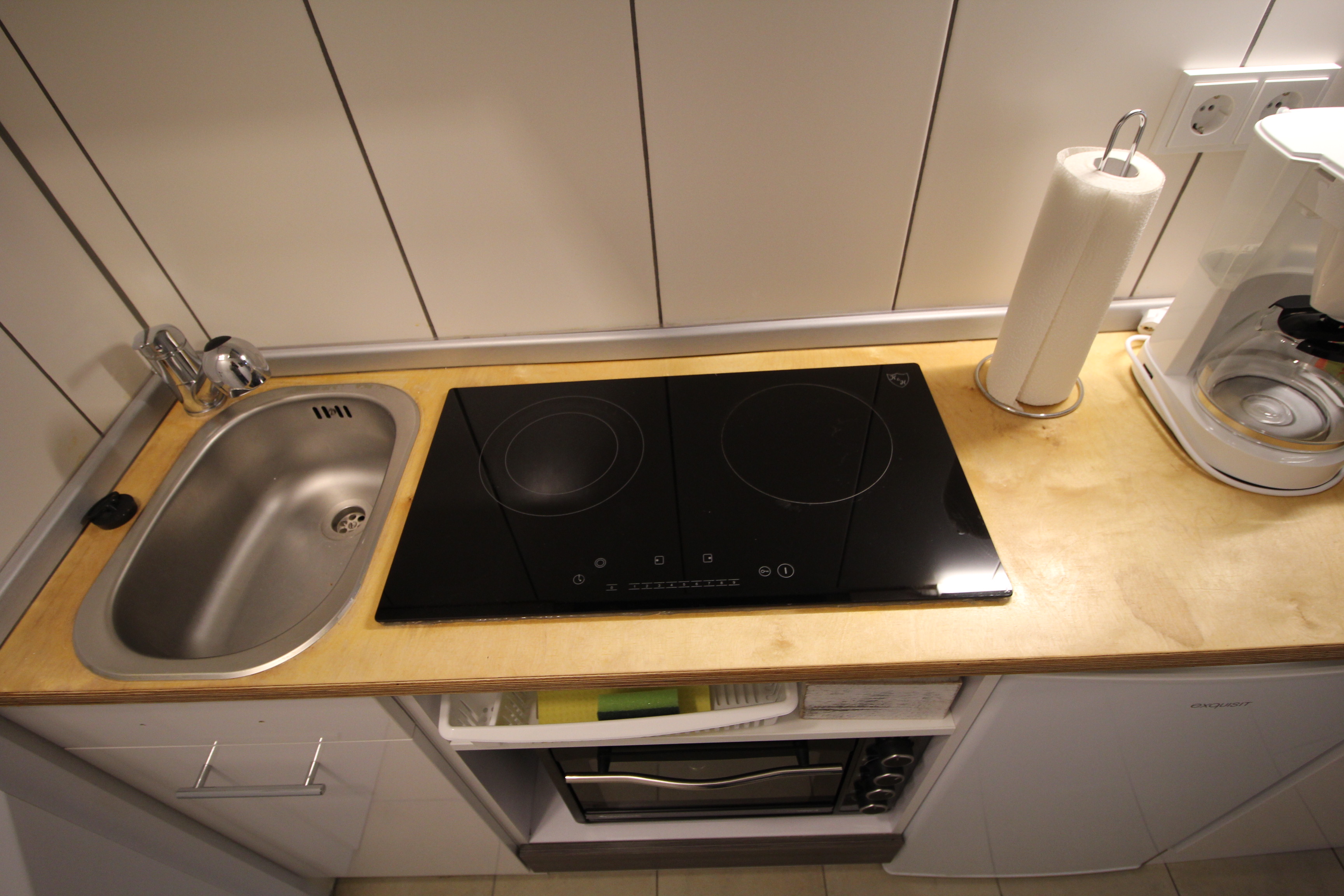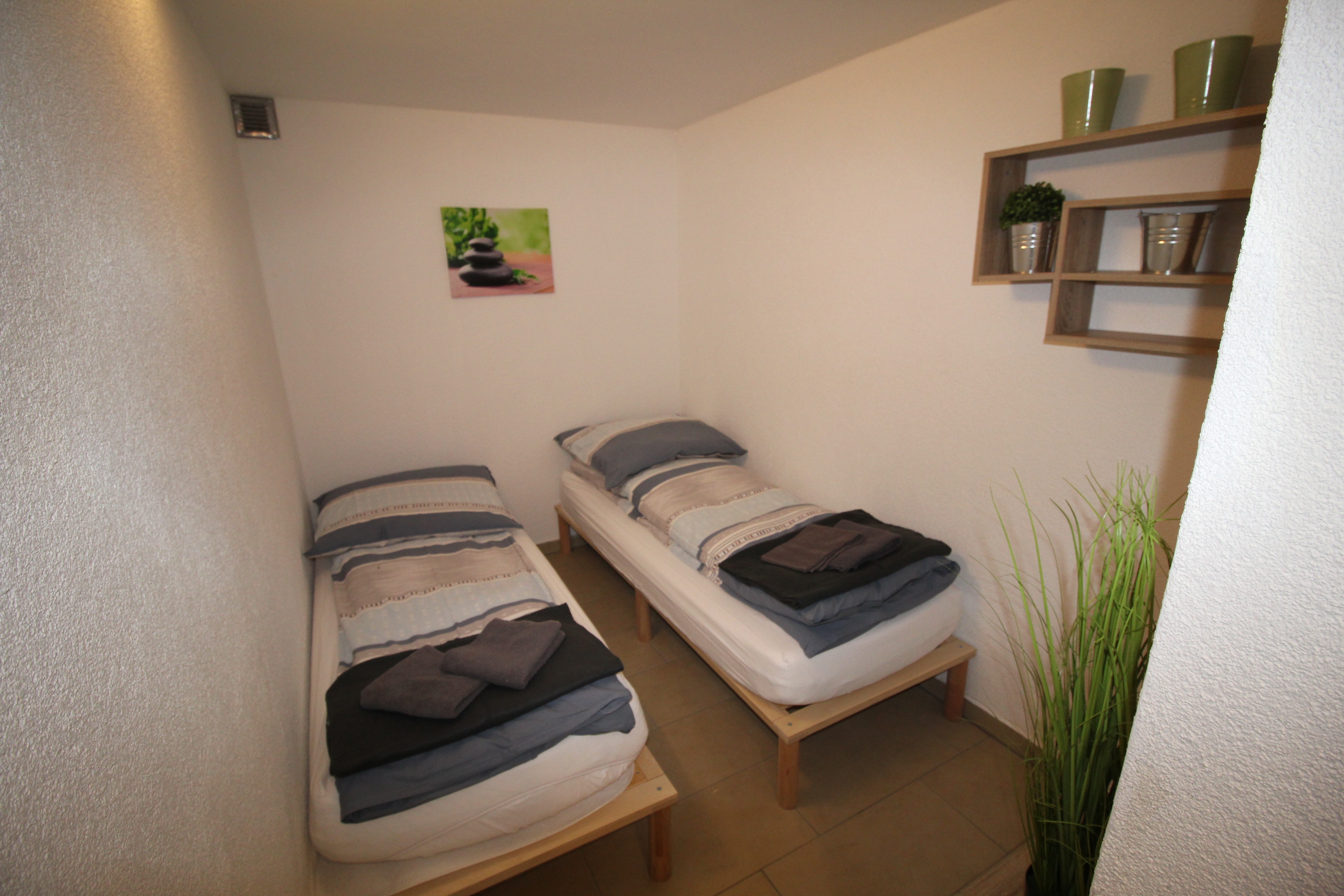 Das Mikro-Apartment im Souterrain mit eigenem Hauseingang! - verfügt über einen Flur, einen Wohnbereich mit separaten Schlafbereich (2 Einzelbetten), funktionalen separaten Küchenbereich und ein Dusch-Bad.
